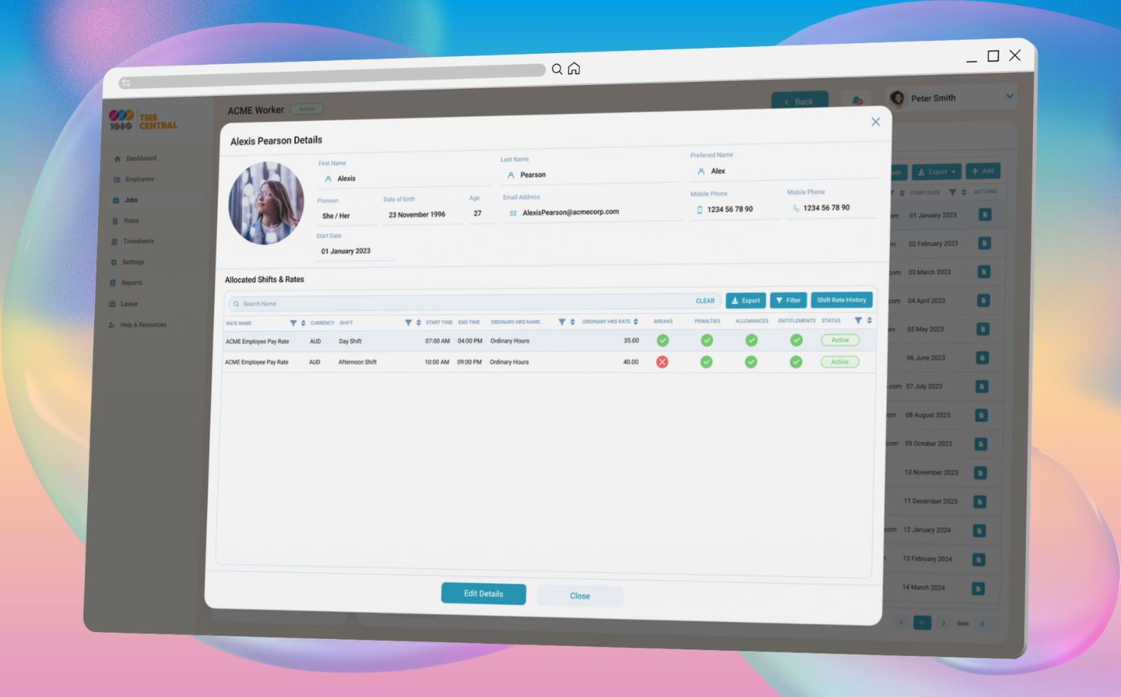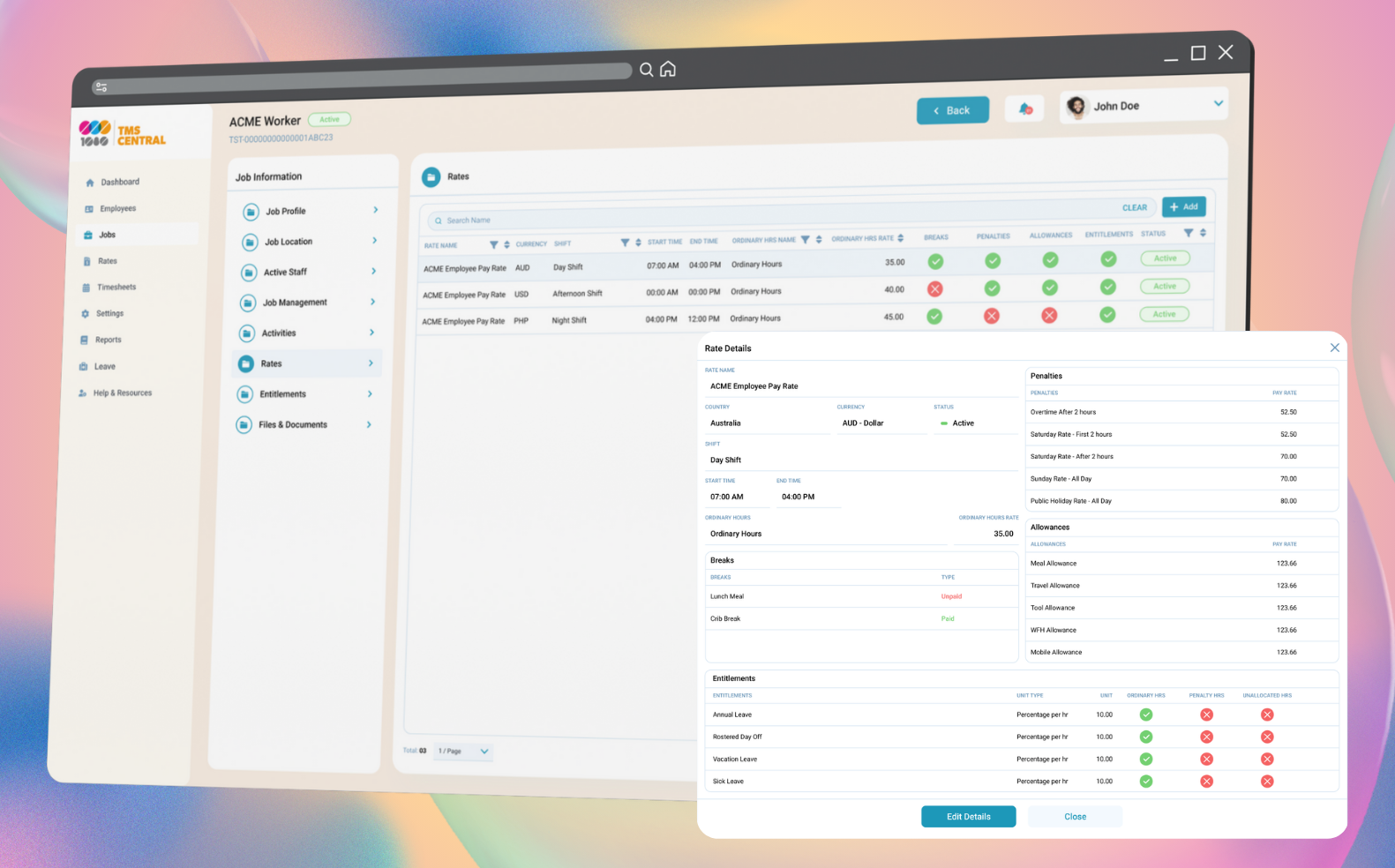 The system tracks complete job shift details and maintains records of staff terminations, including reasons, dates, and relevant notes. Organizations can easily determine and update rates of pay, penalties, allowances, and leave entitlements for each staff member within their assigned roles.